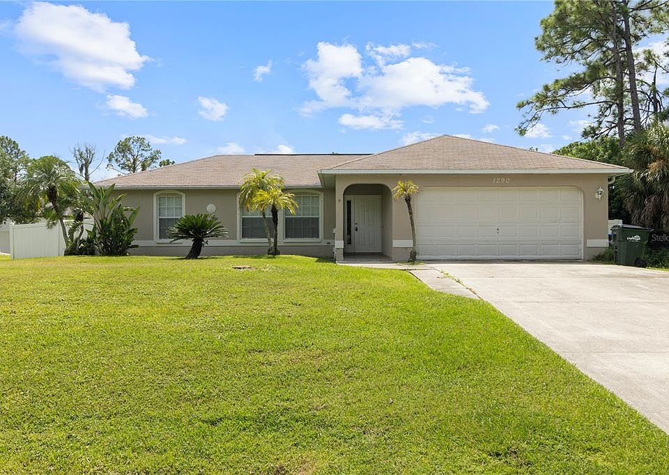 With immediate availability, this home offers a lot of bang for the buck. Centralized location with close proximity to retail, dining and I-75 for the commuter. Through the doors and into an open floor plan accented with tile flooring. High ceilings and decorative niches add aesthetic appeal. The kitchen looks out upon the living room and dining area with breakfast bar seating for snack time. Catch up with the day's events as dinner is being prepared. For privacy, the master suite sits opposite of the guest bedrooms. Large walk-in closet so no complaints about sharing the space. Out the sliders to your sanctuary. Your living space expands into the covered lanai with is air conditioned for year round comfort. The convenience of an interior laundry with a washer and dryer. North Port is rapidly growing and remains family focused. Much to offer in terms of education, recreation, retail, and dining. This is a community to plant roots and call home!