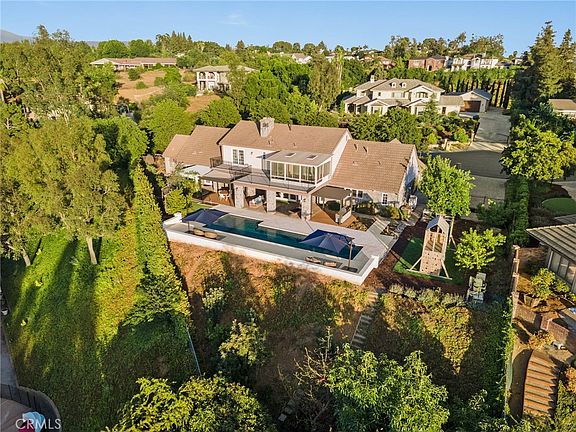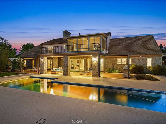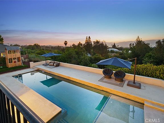 *Check out the newly designed interior and photos, as well as the new price improvement!* Welcome to your own slice of paradise in the exclusive hills of Redlands where a Luxury Hillside Retreat awaits. This exquisite 4-bed 3-bath home is nestled on a secluded cul-de-sac, offering the epitome of luxury living. With Mariposa Elementary and the Redlands Country Club a short golf-cart drive away, this location is unparalleled. As you step onto the property, you'll be captivated by phenomenal views. The new heated lap-pool with mineral/UV purifying system includes a baja-shelf and travertine split-level deck, ideal for relaxation and entertainment. The meticulously landscaped garden boasts 30+ fruit trees and 60+ rose species, creating a lush, fragrant garden setting. For those who relish the organic garden-to-kitchen lifestyle, there’re eleven raised beds. Covered patios and new decks with louvered pergolas flank the rear length of the house, offering settings for alfresco dining, entertaining and repose. Entering this luxurious residence, you're greeted by a generous foyer featuring a grand curved staircase that sets a tone of modern elegance. Adjacent, you’ll find a formal dining room with bay window and Family room with fireplace that flows seamlessly into the breakfast nook. The kitchen is equipped with a center island with Wolf Cooktop, Thermador Vent, KitchenAid microwave and convection ovens, fridge/freezer, Viking 150-bottle wine fridge, Bosch dishwasher and granite countertops. A separate laundry room with Kohler sink, custom storage and room for additional fridge adds to the ease of layout. Additional cabinetry storage is found in the garage. In the familial wing is a spacious Family Room with access to a paved patio. The Study's new French doors open to a deck, extending a tranquil outdoor work space. The Master Suite also accesses a shaded patio. Its ensuite includes a large closet, double showers and 2-person Aquatic Serenity Air Bath with jet/bubble massages and chromotherapy for a relaxing hydrotherapy experience. Upstairs, you'll find two generously sized bedrooms, each offering access to a large balcony with unimpeded views. One bedroom has an adjacent sunroom which offers a tranquil exercise space to soak in the serene surroundings; the other accesses an additional room. Throughout this home, you'll find new modern RH appointments. Don't miss this opportunity to make this luxury hillside home in Redlands your own.