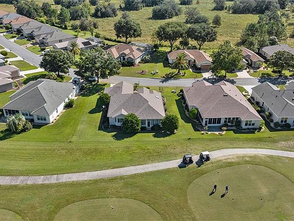 This immaculate 3-bedroom, 2-bath Santa Rosa model in Del Webb Spruce Creek Golf & Country Club (55+), Summerfield, FL, offers stunning views of the 15th tee from its expanded, enclosed, air-conditioned lanai—ideal for relaxing or entertaining. Featuring an open floor plan with high ceilings, designer window treatments, and an updated kitchen with solid wood cabinets, granite counter tops, built-in desk, and updated stainless steel appliances, the interior exudes comfort and style. The versatile third bedroom serves as an office or guest room with a full closet, while the spacious master suite showcases new flooring and large bay windows overlooking the golf course. Recent upgrades include all new luxury vinyl flooring (2024), a new roof (2023), air conditioning (2018), and a resurfaced driveway (2020), complemented by mature landscaping and an oversized lot in the Torrey Pines area. The spacious two-car plus golf cart garage provides additional power and storage for two golf carts, and residents enjoy exclusive access to parks, pools, tennis, pickleball, clubs, dining, and entertainment, all within a secure, gated community with a low monthly amenity fee and no CDD or bond. Secure Gated Community just south of Ocala with shopping and entertainment nearby in The Villages and the Eagle Ridge Golf Club has four 9 hole courses.