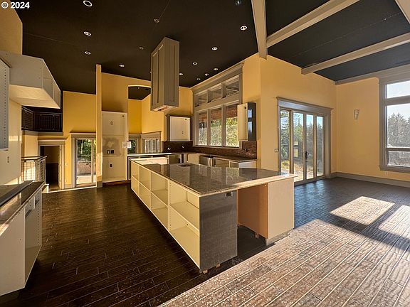Take over finishing this luxurious estate on 10 quiet acres about 15 minutes from Hillsboro! Much is completed in the two structures of just over 10,000 sq.ft. of living space, it just needs your special touches. Quality construction with little expense spared when under construction featuring expansive main level living spaces. Tall doors and splendid architectural flair inside and out. Stamped concrete in a covered circular driveway with a fountain greet you as you approach the entry. Lots of millwork, wainscoting and stonework completed! Truly gourmet kitchen ready for built-in 72” refrigeration, 30”double wall ovens with microwave, and a 48” cooktop. 50” island hood could go stainless or inserted into custom cabinetry for a warmer, more refined appearance. Luxurious primary suite featuring a monster-sized walk in shower with 11 spray heads coming at you from every direction, all the while watching the wildlife in your forested 10 acres from the shower! WHAT?! YES! Hardwood floors abound. Take the elevator down to the wet bar overlooking an indoor basketball court to watch the action from an overhanging balcony! AND the court is big enough to accommodate pickle ball! Or, grab a seat in your private movie theater thats same as bar level floor! Laundry room with sinks is set up for TWO sets of laundry! HUGE upper deck outdoor living space overlooking property with potential for another at ground level. Nearly finished 3 garage to main home with about 2,000+ sq. ft. of living space. Yow! Tiered landscaping can accommodate your wildest dreams! For those with discerning taste, quality, and looking for a something special, please schedule a viewing to see for yourself this stunning, unfinished, luxury estate. Be sure to see the videos!