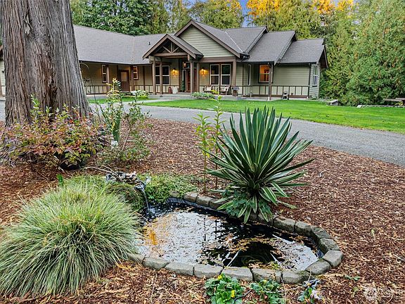 Peaceful living mins from town in this stunning custom-built craftsman on 5 private usable acres. Designed for comfort & function, this 4 bdrm + office home offers single-level living w/ finished daylight basement plumbed for kitchenette ideal for guests, rental, or multigenerational living. Gourmet kitchen w/ bar seating, quartz counters & seamless flow into open living spaces filled w/ natural light. Step outside to expansive deck surrounded by trees, wired for hot tub, w/ outdoor shower & under-eave outlets ready for holiday lights. 25x30 shop w/ 25x20 carport for RV or boat. 3-car garage, whole-home speakers, generator hookup, irrigation-ready yard, chicken coop, wood-burning stove, A/C. Perfect blend of space, serenity, & convenience!