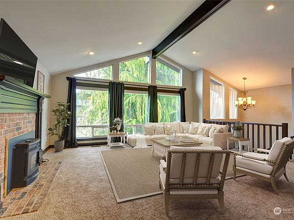 Beautifully updated Sliver Firs home in Snohomish School District. Guests are welcomed up extra-wide stairs to vaulted ceilings & bright open living. Kitchen with custom mitered cherry cabinets, slow-close doors/drawers, pullout shelves, granite counters, new appliances & ample storage in large island & extra upper display cabinets. Bordered tile floors in entry, kit, bthrms & Laundry complement new windows, doors, trim, cabinets & lighting throughout. Primary bdrm has 2 closets & bthrm w/impressive floor-to-ceiling tiled shower & 2 vessel sinks. Lower level offers large 1/2 bath/laundry combo & huge great rm w/wood frpl & access to back yard w/paved patio, fenced yard, storage shed & Rv parking. Deck off dining rm leads to hot tub & patio