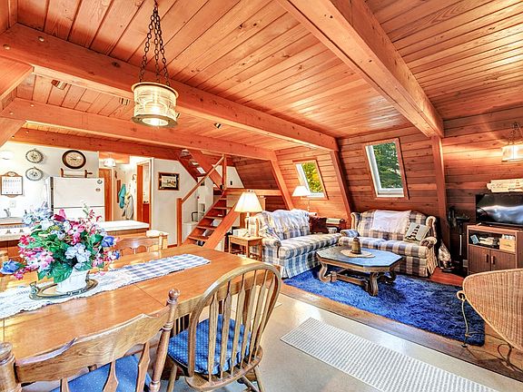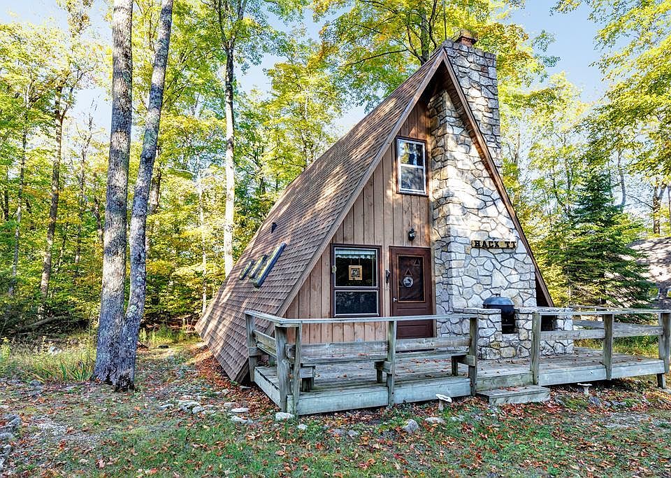 Nostalgic, "old school" stand alone condo is THE ideal Door County getaway! Only 4 units in private complex. Cozy, open concept A-frame features a 1st flr bedroom w/2 more upstairs, perfect for family & guests! 3 baths (2 half upstairs could be combined into a large full bath) Gorgeous stone wood burning FP, Deck w/stone grill for entertaining! Great use of space makes home feel so spacious! Common area w/amazing views of the Bay & star filled skies (complete w/northern lights!) Low HOA fees, pet friendly, Newer roof & furnace and a recent $13K foundation upgrade. Unit IS rentable! Minutes from Sister Bay, Newport State Park. Don't delay on this one!