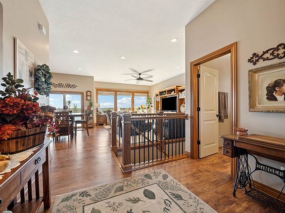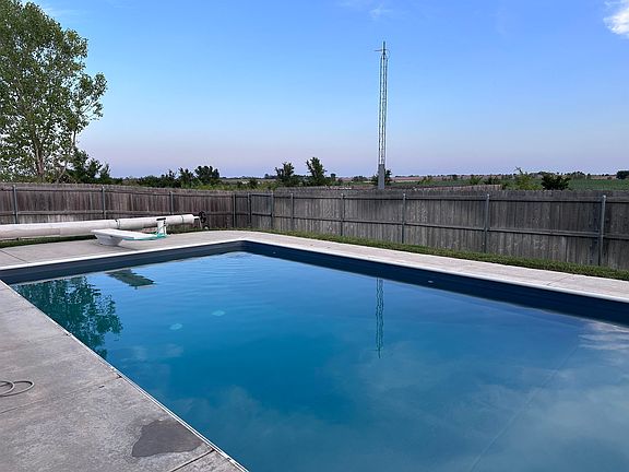 Fantastic Custom Built Ranch in Goddard Schools with an Inground Pool! You enter the home through an upgraded beveled glass entry door with fluted trim into a foyer with an open rail stairway and coat closet. The foyer opens into a large living room with a custom built-in entertainment center, three large picture windows with upgraded trim, ceiling fan, can lighting and luxury vinyl floor. The dining area features a patio door with slim shades and luxury vinyl floor. The spectacular kitchen boasts solid hickory cabinetry, granite countertops, huge island with eating bar and trash drawer, custom range hood, lazy susan, pantry with roller trays & microwave space, separate large walk-in pantry and luxury vinyl floor. The master bedroom is a true retreat with double windows, door to patio, ceiling fan and can lighting. The luxurious master bath boats separate granite top vanities, makeup station, two linen cabinets, huge tile shower with dual shower heads, water closet and large walk-in closet with two sweater racks and off-season storage. Off the kitchen is a super laundry room with a sink, cabinetry, hanging rod, coat hooks, luxury vinyl floor and full size frig space with a water hookup. Split on the other side of the home is a large 2nd bedroom with ceiling fan and a super bath with a raised granite top vanity, linen cabinet, window and a full tub/shower. The basement features a large family room with can lighting, two bedrooms with daylight windows & nice closets, one bedroom has access to the hall bath with 4ft shower, raised granite top vanity and linen. Split on the other side of the basement is a 5th bedroom with a daylight window and a walk-in closet with sweater rack plus an ensuite bath including a 4ft shower and a raised granite top vanity. Out back is a fantastic 13x20 raised concrete patio with a stone faced gas fireplace that overlooks the 16x36 inground pool with a diving board, auto cleaner and a copper ION system. The garage features an 18ft overhead door on the two car and a 9ft door on the 3rd car plus a walkthrough door to backyard. Other quality features include Trane 95% furnace and 14 SEER add-on heat pump, humidifier, 50 gallon water heater, generator hookup, all baths except m/f hall bath have exhaust fans with blue tooth speakers. For a green yard there is an irrigation well and sprinkler system. Don’t miss this wonderful custom home!