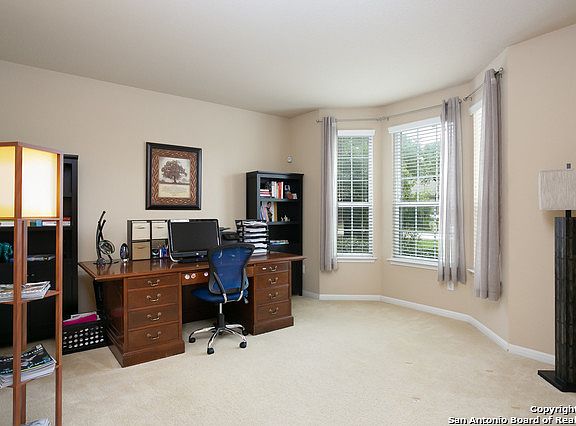 This beautiful 4/2.5 home in Helotes won't last long Enjoy your evenings on the custom back patio with double ceiling fans that backs up to green belt. Home features open bright floor plan, office/study, separate dining. Open inviting kitchen, breakfast nook and walk in pantry. Large master up with separate shower and double sink. Game room perfect for entertaining. Perfect home for the growing family. Minutes from Bandera shopping, dining and entertainment.
