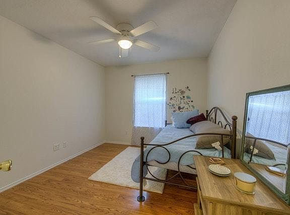 Highly desirable One Story Home located in Hunters Chase Neighborhood. Many upgrades, very clean and Move in Ready! New Granite counter-tops in kitchen, and bathrooms.No carpet wood flooring through out. Great back yard for entertainment. Washer ,dryer and refrigerator . Man Cave/Workshop in the Garage will impress.Walking distant to exemplary school, parks, pool, tennis court. Premium convenient central location, close to major employers!This one won't last! Landlord has a lawn care included in rent