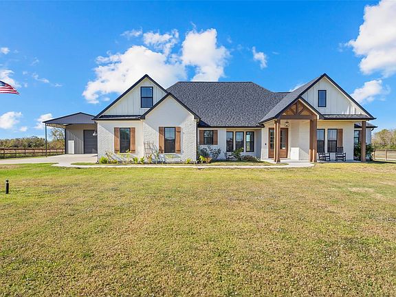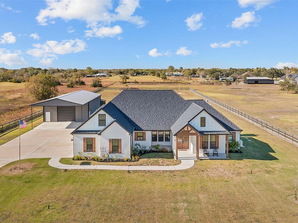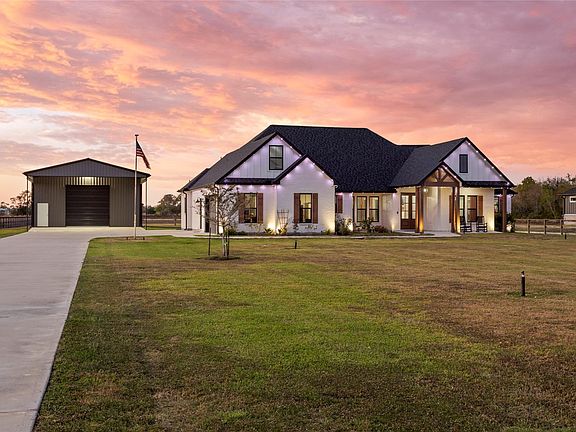 Welcome home to this stunning residence offering luxury, functionality, & country charm. Situated on 2 fenced acres with an automatic gate, this property provides both privacy & space to enjoy. Inside you’ll find a split floor plan with an open-concept design & an upstairs study, office, or flex room for added versatility. The kitchen is a showstopper featuring an oversized island with an undermount sink, pot filler, & plenty of workspace for cooking and entertaining. Step outside to your own outdoor retreat to an outdoor kitchen with leather finish granite countertops, pellet smoker, sink, storage, & built-in speakers on the patio for relaxing evenings by the wood-burning fireplace. A 30×50 workshop with a 20-ft overhang provides the perfect space for projects, equipment, or hobbies, Generac generator ensures comfort and peace of mind, & a pond stocked with fish to feed. The home is prewired with Cat 6 internet connections for all TVs, keeping you connected anywhere in the home.