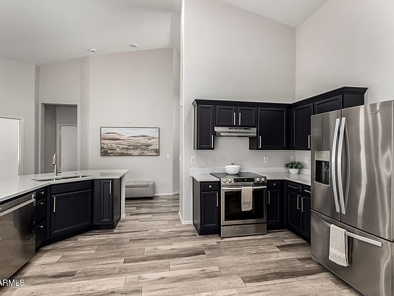 Welcome to this beautifully updated 3 bedroom, 2 bath home with a versatile bonus room in El Mirage. The kitchen features new granite countertops, a large island, and fresh interior paint throughout. Wood-look tile flooring and new carpet add style and comfort, while the great room offers vaulted ceilings and abundant natural light. A rare bonus room provides flexible space for a home office, den, or even a 4th bedroom. The primary suite includes a walk-in closet and a recently remodeled bath with a walk-in tile shower and double vanity. The backyard has been redone with low-maintenance turf, two shade pergolas, and a covered patio, perfect for entertaining.