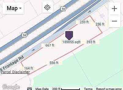 926 feet of Hwy 59 frontage!!! Great traffic exposures. 59 Freeway 3 lanes with 2 lanes feeder road each way, total 12 lanes, WOW, City utilities, ATT Fiber cable installed This small commercial lot is ready for your commercial building or your future land investment. Property is wooded with the border being a small creek to small houses next door.