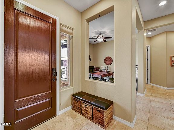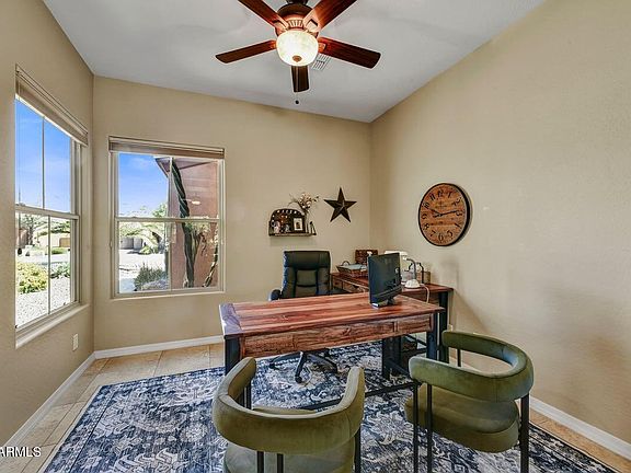 Welcome to this beautifully maintained home in Premier Adult Golf Community! Features 2 bedrooms, 2 bathrooms and a Versatile den or bonus room off the entry. The Spacious split layout is filled with Natural light and enhanced by custom Designer features. The Entertainers Kitchen Boasts Expansive Granite Countertops, stainless steel appliances, Gas stove, upgraded cabinetry and elegant 20'' tile flooring. Hunter Douglas blinds add a refined touch to every room. Master has fully tiled shower, double sinks, tile counters w/decorative backsplash. BACKYARD is your own OASIS with incredible views, Custom- Gas fireplace with decorative stone accents, HUGE extended Travertine tiled Patio, 2 person hot tub, Oversized 4' width Garage w/extra outlets for fridge & Golf Cart.