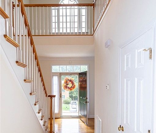 WELCOME HOME to this Gorgeous 4600++ brick home with 5 bedrooms, 3 full baths, 2 half baths, a daylight full basement, nearly 750 square feet of unfinished flex-space AND an attached garage! All of these options are only available from the largest home in Hidden Valley Estates. Upon entering the home, you are greeted by gorgeous hardwood flooring that is complemented by a generous outpouring of natural light. There is a formal living room to the left, and a formal dining room to the right that has notched crown molding and an elegant chair rail. Continuing on leads to the expansive kitchen that has plenty of room for multiple chefs and enough counter space to prep even the largest of meals. The beautiful oak cabinets offer plenty of storage space and compliment the perfectly appointed stainless-steel appliances quite well. There is a first-floor primary that is flanked by a walk-in closet and full bath. After walking up the grand hardwood staircase, you can venture to three more bedrooms to the right, or travel left to the luxurious upstairs suite with tray ceiling, sitting room, and walk-in closets. Off the sitting room is the spacious en-suite with double vanities and jetted tub.