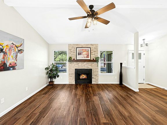 SELLER IS OFFERING 4% TO BUYER FOR INTEREST RATE REDUCTION OR THEIR CLOSING COSTS WITH AN ACCEPTABLE OFFER. Modern updates meet the tranquility of in this classic craftsman style home. A classic Bill Milburn design, this thoughtfully updated home features a floor to ceiling stone fireplace surround, a soaring, vaulted, 2-story living room ceiling with an open concept floorplan that flows into the kitchen & bedrooms as easily as it flows to the backyard deck & firepit area. Many updates include fresh paint, brand new windows, roof, flooring, stainless appliances, cabinetry & quartz countertops throughout, as well as new baseboards, fixtures & faucets, drawer pulls & tub surrounds. These all lend to the contemporary & refined appeal. New windows frame all the views, & the French patio doors with privacy blinds, provide easy access to the large wooden deck, flower beds & shaded backyard. Whether you’re sipping coffee, watching birds frolic or unwinding by the cozy firepit, the deck & backyard offer a private retreat where you can relax outdoors at home. The attention to detail in the updates speaks to the live-ability, comfort & joy you’ll experience while living in this home. Whether you are enjoying the cozy gas fireplace that warms your winter evenings, or preparing gourmet meals in this well designed chef’s kitchen, you will love living here. Beyond your front door, Apple Computer is within walking distance to work, as are neighborhood amenities such as fishing at Riata Pkwy Lake, exercising on the hike & bike trail, or playing with the kids at the park & playground. Close to the Domain, Q2 stadium, & the Arboretum, & major employers including IBM, Freescale, St David’s & Ascension hospitals, this home provides easy access to shopping, dining, medical, etc. Round Rock ISD provides a quality education at Jollyville Elementary, Canyon Vista Middle & Westwood High School. Don’t miss seeing this one in person. You’ll be glad you did!