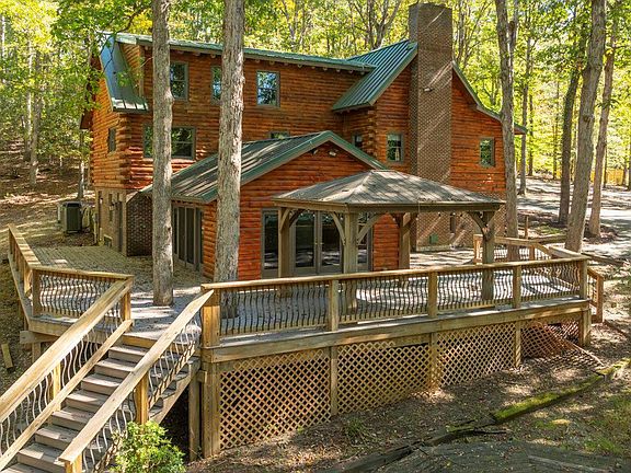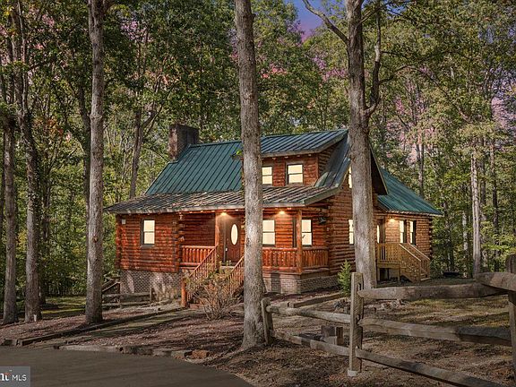 If you’ve been searching for the rare combination of a true log home, acreage, and proximity to town—your wait is over! Welcome to 12905 Spotswood Furnace Road, where rustic craftsmanship, modern updates, and peaceful living meet—just minutes from Route 3 and Downtown Fredericksburg. Tucked beyond a gated entrance on more than 8 wooded acres bordered by Mott’s Run Creek, this one-of-a-kind property delivers total privacy and an authentic connection to nature. A fully paved circular driveway leads you past mature trees and native landscaping to the home’s picturesque hilltop setting,. One of the property’s most valuable features is the incredible 30 × 50-foot workshop — a true showstopper for hobbyists, professionals, and car enthusiasts alike. This heated, powered building includes its own electric meter, a climate-controlled office, wood/coal furnace, 10,000-lb two-post car lift, 14-foot ceilings, and loft storage. The paved driveway allows for generous parking, including room for guests or a motorhome. Whether you’re running a business & need storage, restoring vehicles, or crafting your next project, this space is designed to inspire. The three-bedroom, three-bath log home spans approximately 2,800 square feet across three finished levels and has been lovingly maintained with thoughtful upgrades, including freshly stained exterior logs, a new well pump and well line, and a newer electric water heater. Inside, every detail speaks of craftsmanship and comfort—from exposed beams and five-inch hardwood floors to the stunning 30-foot floor-to-ceiling stone fireplace. The home’s high thermal mass log construction helps it stay cool during the day and comfortable at night. The open-concept kitchen showcases hickory cabinetry, granite countertops, a spacious island, and a dedicated pantry, while the nearby Irish-pub-style entertainment space makes gatherings unforgettable. Upstairs, the primary suite overlooks the wooded backdrop and includes a private bath, while multiple flex spaces and a loft offer endless possibilities for bedrooms, an office, or a studio. Step outside to an entertainer’s dream: a large composite deck with a cedar and metal-roofed dining area, a cozy stone and wood firepit, fenced yard, garden shed, and two 40-foot shipping containers for storage. All this—just 5 minutes to shopping and dining along Route 3, 10 minutes to I-95, and 15 minutes to Downtown Fredericksburg—proves that tranquility and convenience can coexist. Acreage this close to town is always very hard to find—especially paired with the warmth, character, and craftsmanship of a genuine log home. Come experience this one of a kind property for yourself!