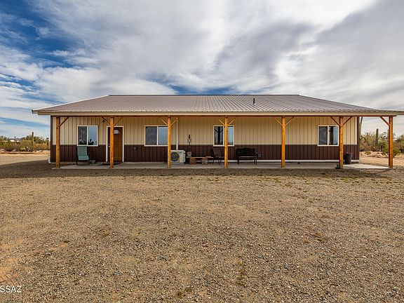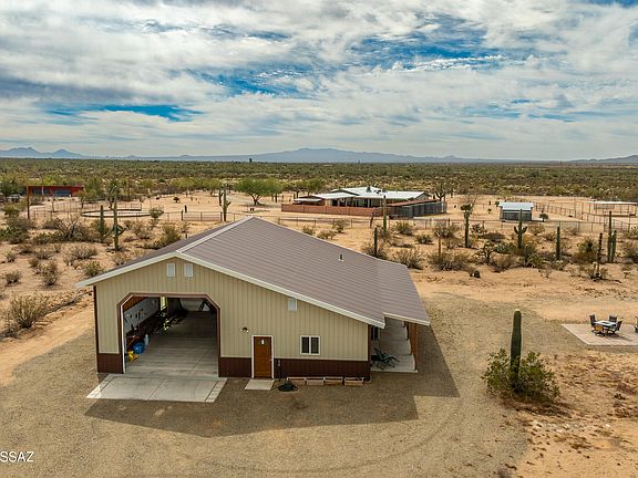 Rare yet now highly desired newer built modern Barnaminnium- half massive barn and half condommium style living home. Recent new construction - built in 2022- modern and clean and so highly useful. Easy flat topography and, privacy, utilities, RV hookup and a huge RV style garage - at least double deep - double wide - store EVERYTING here. Rare find for Avra Valley/Marana. Store your RV inside enclosed barn-style garage - or easily hook up outside. Loft area in upper part of barn-garage. Interior has fine features including luxury vinyl flooring, stainless steel kitchen appliances, high quality wood kitchen cabinets, spectacular bathrooms w/redwood framed showers. There is a Ponderosa length covered patio - and a further out large slab for fire pit gatherings & playing the guitar! High end metal roof w/long warranty. Extra storage shed outside. Home is being offered furnished or turn-key for only an additional $2500 on separate Bill of Sale. Truly 100% move-in-ready. So new - so useable - flat and easy use parcel. Store RV's, boats, ATVs - any toy you may own - roughly 1200sf space in garage. No HOA. Reasonable restrictions. Zoned for horses - plenty of room for corrals/stables. Much of the land has been cleared for easy and safe use. Endless possibilities to this fabulous property!