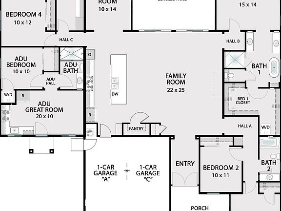 Modern 2,935 sq ft home with 5-bedroom, 4-baths including a fully equipped 1-bedroom ADU on an estate lot. The main home offers an open-concept layout with a Calacatta quartz kitchen, and gas stove. Bathrooms feature clear glass showers and black fixtures, plus a spacious walk-in laundry room with upper and lower cabinetry. The 435 sq. ft. ADU includes a full kitchen with stove, walk-in shower, and laundry closet. Enjoy the covered patio with room to add a pool or customize your dream backyard. Move-in ready Dec 2025. (pictures are for reference, actual home may or may not have different finishes and upgrades, for questions call or visit our office)