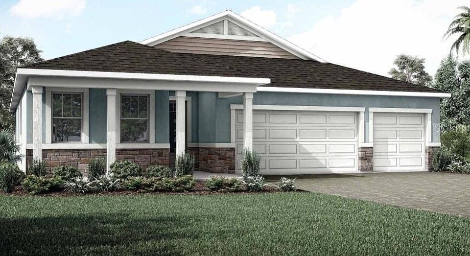 Under Construction. The Isle Royal is a spacious and thoughtfully designed home offering just under 2,900 square feet of versatile living space, making it ideal for multigenerational living. With 4 bedrooms, 3 full baths, a powder room, a retreat area, and a generous 3-car garage, this home combines comfort, privacy, and functionality. Upon entering, you’ll find a private bedroom with its own en suite bath tucked away from the main living areas—perfect for guests or extended stay. Two additional bedrooms are located on the opposite side of the foyer and share a full hallway bath and a retreat area that’s ideal as a game room, study space, or office The owner’s suite is privately situated at the back of the home, offering a true sanctuary with two walk-in closets, split vanities, an extended glass-enclosed shower, and a linen closet for added storage. It’s the perfect combination of space and serenity. At the heart of the home is the expansive open-concept kitchen, dining, and great room. The kitchen is a chef’s dream, featuring an incredible amount of cabinetry and countertop space, plus a large island with a breakfast bar—perfect for quick meals or entertaining. The dining area comfortably accommodates a table for 8 or more, and the great room offers ample space for multiple seating areas and a full entertainment setup. Glass sliders lead out to the covered lanai, which provides plenty of space for both dining and lounging, allowing you to extend your living space outdoors and enjoy Florida’s beautiful weather year-round. A convenient powder room is located off the foyer for guests. Located in the master-planned community of Crosswind Ranch in Parrish, residents enjoy access to future resort-style amenities including a pool, covered cabana, pickleball courts, tot lot, paw park, and miles of scenic walking trails. Photos, renderings and plans are for illustrative purposes only and should never be relied upon and may vary from the actual home. Pricing, dimensions and features can change at any time without notice or obligation. The photos are from a furnished model home and not the home offered for sale.