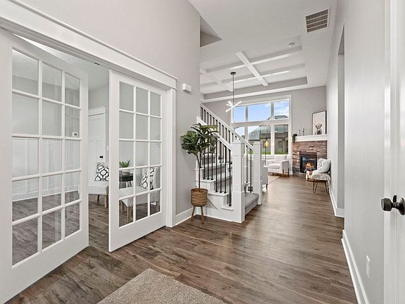 This stunning new home is truly a masterpiece that is sure to steal your heart. Featuring 2989 square feet spread over two stories, this home boasts a spacious master bedroom on the main floor that offers the perfect retreat for anyone looking for a little peace and relaxation. As you step into the foyer, the exquisite woodwork and detailing will immediately catch your eye, and you will find a cozy den just off to the side that is perfect for a home office or reading nook. The great room is equally impressive, with a beautiful coffered ceiling, fireplace, and stunning rod iron railing that leads you upstairs to your 3 generously sized bedrooms with and large jack and Jill bath. The kitchen is a true work of art that will make any chef feel right at home. With white custom cabinets that reach all the way to the ceiling and lighted cabinets on top, a contrasting kitchen island, Quartz counter tops, and a glass backsplash, this is a space that is designed to impress. There is also a corner pantry, range, dishwasher, and microwave included. One of the standout features of this home is the 11x11 sunroom with its cathedral ceiling that floods the space with natural light. You will also love the wood laminate flooring throughout the entry, den, great room, kitchen, hall, and half bath. The master bedroom is a true oasis, featuring double closets, his and her vanities with quartz counter tops, and a beautiful walk-in tiled shower. The open floor plan creates a feeling of spaciousness and flow that is perfect for entertaining or simply relaxing with family and friends. Other notable features of this home include an oversized 3 car garage, accents feature awnings with a life time standing seem metal roofs , and close proximity to I-69/ I- 469, Parkview and Dupont hospitals, restaurants, shopping, and more. In short, this stunning new home is a true gem that is sure to provide its new owners with a lifetime of joy and happiness. *refrigerator, dishwasher, gas range and microwave included in sale