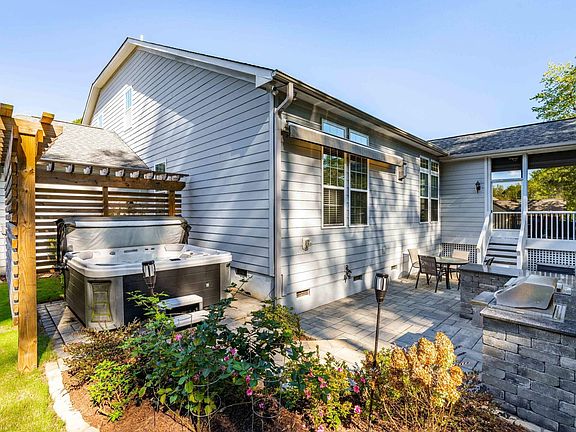 This stunning, beautifully maintained, 4 bed, 3 bath home offers luxury single-story living with a gorgeous outdoor kitchen! Set on a beautiful, private half-acre lot in one of Northwest Raleigh's most desirable neighborhoods, enjoy the Carolina weather from the relaxing screened porch. The massive paver patio has a blackstone grill, pellet smoker, dining space and power, retractable awning so you can use it any time. Or soak in your private hot tub overlooking the huge, fenced and manicured lawn. This is outdoor living at its finest. The main level features gorgeous hardwood floors, 9 foot ceilings, and a spacious open floor plan. The kitchen boasts a huge granite island, stainless steel appliances, wall oven, gas stove and dining space. Gas logs warm the open 2- story family room. The ''split'' bedroom floor plan allows you to retreat to the main floor primary suite, complete with a luxury bath, double closets, soaking tub, separate shower, and double vanity. Two additional bedrooms and a full bath are conveniently located on the main floor, perfect for guests, office or art studio. Upstairs, you'll find a versatile bonus room, the 4th bedroom, and the 3rd full bath. A 3-car garage provides ample storage for vehicles, toys and lawn equipment with tankless water heater. Located in the highly-rated Leesville Road school district, you're next to Strickland Road Park and minutes from shopping, dining, Brier Creek, RTP, and RDU. Experience the best of Raleigh living—a perfect blend of suburban tranquility and city convenience.