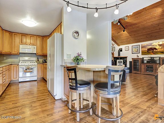 Discover this charming Willow home on nearly 1.5 acres w/ mountain views close to town! 2bd/1 & 3/4bath + office. Home includes addition built in 2012 w/ master on main level, cathedral ceiling in living room.  Long lasting metal roof & vinyl siding, landscaping w/ established flowers & berries, oversized attached garage/ detached shop, multiple sources of heat (toyo/wood) & winter trail access.