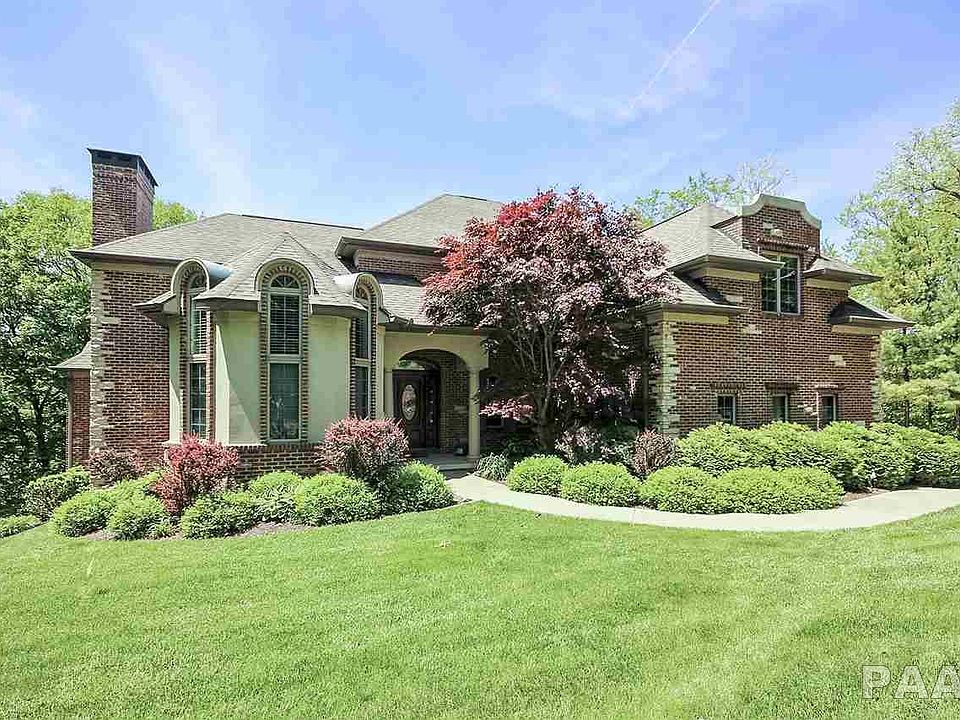 As you approach this rolling 2.4 acre, prestigious, private Georgetowne wooded lot down the winding, HEATED drive; you'll be amazed by this Scholz architecturally designed beauty. With breathtaking & professionally terraced front/rearyard landscaping this special 1.5 story offers so much: Dramatic barrel ceilings, gleaming Brazilian cherry wood floors, spacious main floor master suite w/ double sided fireplace, huge shower & beautiful whirlpool tub. While formal up front, stylish and cozy awaits in the fireplaced family room overlooking wooded property & terraces. Terrific basement as well!