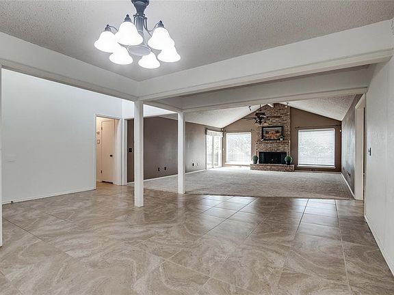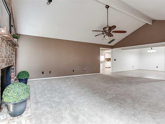 Roof-2024. Looking for a home to host friends and family gatherings? With two living rooms and two dining areas, you will find this home has plenty of space to entertain. The floorplan has kitchen and living areas at the North end of the house. The primary suite and bedrooms are on the South side. A spacious layout and ample storage will be some of your favorite features. Other key features include a beautiful wood-burning fireplace in the living room, storm shelter in the garage, large laundry room with additional storage, high living room ceilings, and new roof. You'll love the location. Being close to Mercy hospital, the electrical grid is a priority repair in the event of blackouts. Your commute will be easier with quick access to near Memorial Rd and Hefner Prkwy. Shopping, restaurants, Mercy Hospital and The Greens Country Club are all very close. Neighborhood has direct access to the golf course, membership is optional. Enjoy beautiful sunset views from the comfort of your living room.