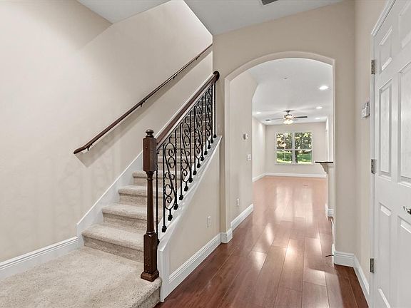 Welcome to Montacino, a gated community offering both convenience and charm. This updated 3-bedroom, 2.5-bath townhome combines modern finishes with a comfortable, functional layout. The first floor features an open design with spacious living, dining, and kitchen areas that flow seamlessly for everyday living or entertaining. The kitchen includes granite countertops, stainless steel appliances, and a stylish backsplash, with views of the covered back porch overlooking a peaceful green space. A convenient half bath is also located downstairs. Upstairs, the primary suite offers a private balcony, walk-in closet, and en-suite bath with dual vanities and a walk-in shower. Two additional bedrooms, a full bathroom, and a conveniently located laundry closet with washer and dryer complete the second level. Recent updates include new laminate flooring downstairs, new microwave and fridge. The home also includes a one-car garage. Residents enjoy maintenance-free living with access to a resort-style pool, landscaped grounds, and lakeside sidewalks perfect for a stroll. Ideally located near I-4, Winter Park, and Downtown Orlando, this home offers the best of both a peaceful retreat and city convenience.