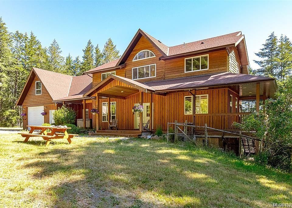 NEW PRICE Welcome to 13 acres of forested privacy, just 5 minutes from Langford town. Featuring 5 bedrooms, 4 bathrooms with an additional office space. Built with standard lumber frame construction, engineered beams, roof trusses, and elegant cedar siding. Stay comfortable with a brand new wood fireplace (2025) and electric forced-air furnace, plus baseboards for added warmth. Relax in the covered 2017 hot tub on the deck, equipped with a safety breaker. Enjoy ample water from a 425' well with a 50 gpm recovery rate. The property includes a 200 amp underground service to the house and a separate 100 amp service for the workshop. The meticulously maintained septic tank was recently pumped and inspected in 2024. This home offers both privacy and proximity, balancing seclusion with easy access to Langford town. Experience the best of both worlds in this exceptional property. This property offers ample room & potential for commercial needs or future projects.