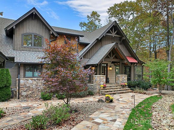 Nestled within a serene 6.17-acre wooded glade, this magnificent home captures the essence of mountain elegance and craftsmanship. Built by Jerry Brown, the residence blends open-concept living with refined architectural details, high-end finishes, and inviting gathering spaces — all perfectly framed by panoramic views of Looking Glass Mountain and Mount Pisgah. Step inside to discover four spacious bedrooms, three impressive stone fireplaces, and post-and-beam architecture that showcases the beauty of natural materials. The hickory flooring throughout the main, upper, and bonus levels exudes warmth and quality. The home’s expansive outdoor living areas include Epee decking, solar-powered rail lighting, and two screened porches — one off the primary suite and an oversized porch off the great room, complete with a wood-burning fireplace. Inside, the gourmet-inspired bar and wine cellar offer exceptional entertainment spaces. The pub-style bar features a maple countertop, sink, and built-in appliances, while the gated wine cellar showcases an antique metal door and a curated wine collection. Downstairs, relax in the home theater with projection TV and surround sound, or stay active in your private fitness studio outfitted with premium equipment.