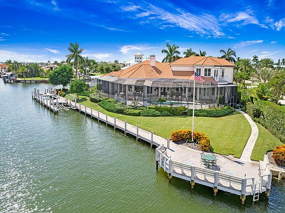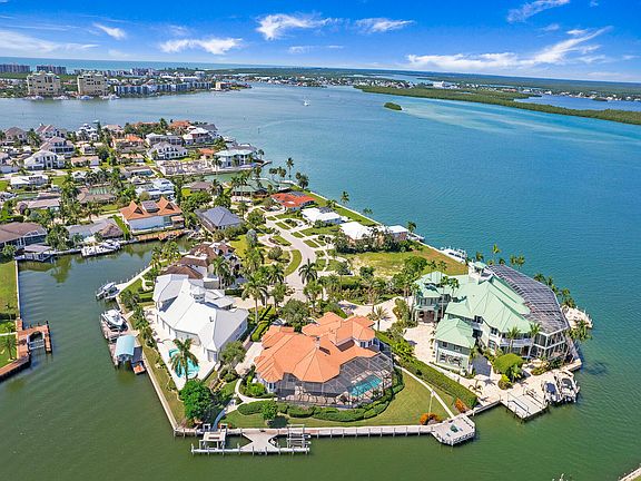 Location, Location, Location! Boaters paradise with super quick Direct access to the Marco River and Gulf. First time this home is being offered for re-sale. Oversized tip estate lot with 5 bedrooms, 5 full baths, 3 half baths, wonderful views of the Marco River and the waterway. Enjoy the highly desirable South Eastern rear exposure from the massive heated pool and brick paver covered lanai deck. Interior features include two living rooms, a chef's kitchen with double ovens, an island, pantry, office, formal dining room, elevator, wood flooring, grand staircase, 2 huge storage rooms, a spacious game room, plus 2 laundry rooms. Exterior features included manicured landscaping, oversized paver driveway, 4 car garage, 247 feet of Seawall, 2 docks with lifts, a gazebo, fire pit, and plenty of room to accommodate a large yacht. This home looks even better in person.