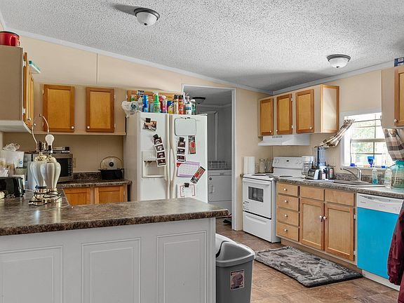 The manufactured home is built on a permanent foundation. The thoughtful addition of ramp access at the back of the home makes it easily accessible for all, adding a layer of convenience for residents and guests alike. The front porch invites you to relax and enjoy the peaceful surroundings, offering a serene spot for morning coffee or evening unwinding.