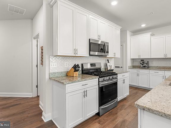 Rare, villa-style townhome on a premium lot, in lovely Summerfield Village Community. This meticulously maintained 2-car garage townhome offers just over 2,700 square feet of well thought out living space. A covered front walkway greets you, leading into a wide entryway with a conveniently located powder room on the way to your open concept main level. On this level you will find beautiful LVP floors throughout, and a gorgeous kitchen with 42" cabinets, a large island with pendant lighting, upgraded granite countertops with large under-mount stainless steel sink, elegant herringbone backsplash, 5 burner gas stove, stainless steel appliances, and a pantry. This level also hosts large living and dinging rooms, access from your garage, as well as access to your low-maintenance Trex deck that backs onto a lush tree line for ultimate privacy. As you head upstairs, you will find three generously sized bedrooms all with walk-in closets, a large loft area, bedroom level laundry room, and additional storage. The primary suite has a beautiful tray ceiling with crown molding, double doors, and a stunning ensuite bathroom complete with double vanities, upgraded countertops, large ceramic tile, and a huge shower with bench seat. Down in the basement you will find another full bathroom, as well as an awesome rec room with a rock climbing wall, extra storage, and access to your backyard with a lovely paver patio and swings. And talk about location! This home is walking distance to Waugh Chapel Shopping Center, minutes to Fort Meade and Annapolis, and has easy access to major commuter routes. The community also offers a club house, dog park, 2 playgrounds, picnic tables, and ample overflow parking.