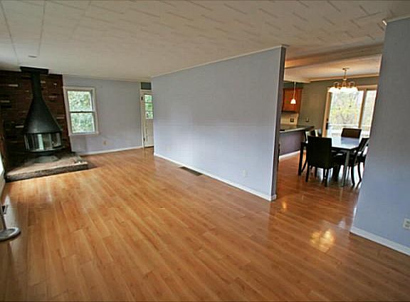 Beautiful 2/3 bedroom ranch with a great open layout,featuring updated bathroom and kitchen!!! Brand New Kitchen installed with new cabinets, flooring,undermount sink & light fixtureSeller installing tiled back splash next week as well! Some of the many updates include:Newer sliding glass door and Newly repainted deck overlooking the wooded yard.New Laminate wood floors, all new fresh paint and Newer light fixtures throughout! Walkout basement includes a fully finished bedroom with a walk in closet and recessed lighting.Newer mechanic and a large yard round out this fantastic home!