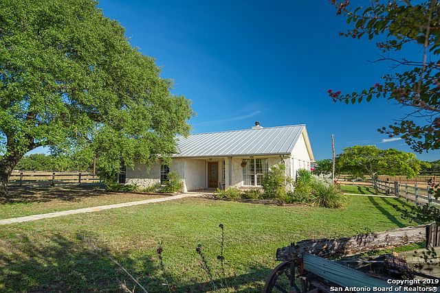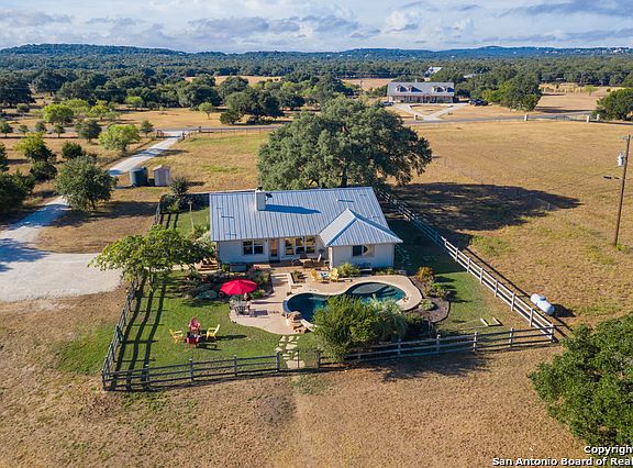 Absolutely charming ranchette! Beautiful 3/2 hill country home on 5.6 acres with a pool in Spring Branch, Tx. This home boasts with pride of ownership. Dual walk in master closets, french doors off master to pool, tile wood floors in living, dining, hall and bathrooms. Barn Master 3 stall barn with loft, tack room and modular pens which are great for 4-H/FFA projects! Tack room has a bench with built in dog kennel! Community has a beautiful gated riverfront HOA park!