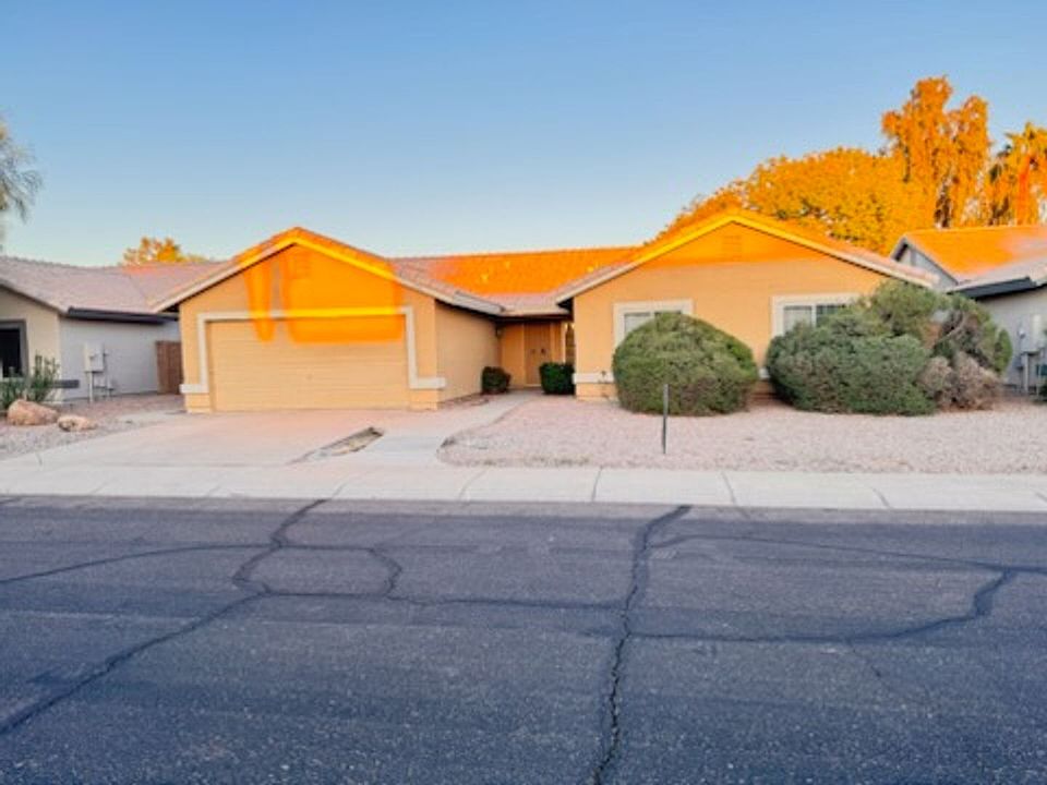 Spacious four bedrooms or three plus a den all arranged in a split plan around a large eat in kitchen and great room. Lots of tile flooring. Back yard has a full width covered patio, fenced pool, and a grassy play area for the kids. Close to freeway access and shopping, entertainment and chandler air park.