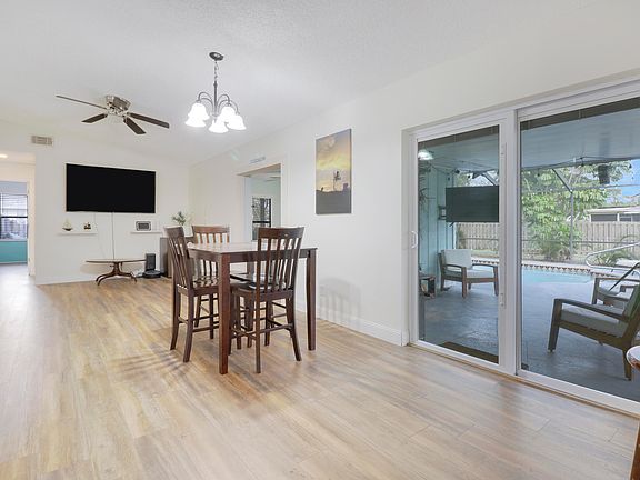 Remodeled 2 bed PLUS office/den ( very easily converted into 3 bedrooms) 2 bath, pool home. New LVP flooring, recessed lighting, new kitchen appliances & impact slider. This large & lush property with mature trees is situated on a fenced in corner lot with a circular driveway. Enjoy the 15 x 30 screen in pool, with covered lanai area for entertaining.