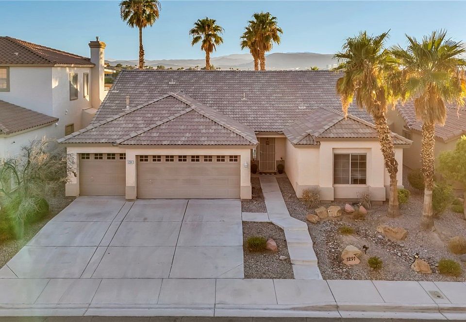 Stunning Single Story with Pool, Spa & Mountain Views in Seven Hills! This 3 bed plus a den, 2.5 bath offers an open layout with a spacious living room, dining area, and a kitchen with stainless steel appliances, granite counters, and generous storage. The split floor plan creates a private primary suite with custom walk-in closet and remodeled bath. A 3 car garage adds convenience. HVAC & Furnace replaced in (2022). The backyard is an entertainer’s dream, pool resurfaced & tiled in (2024) gas heater for pool & spa replaced (2023), built-in gas & charcoal BBQ, and covered patio, all with no neighbors directly behind. Elevated lot captures sweeping mountain and sunset views in a sought-after community minutes from shopping, dining, parks, and trails.