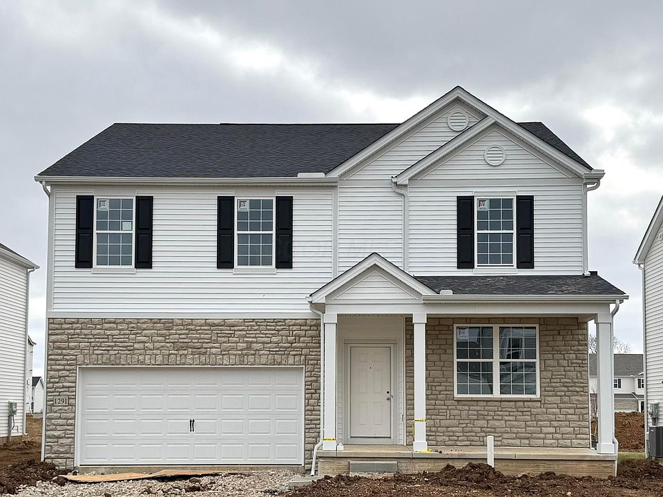 ESTIMATED COMPLETION BY THE END OF JANUARY. This is a stunning new 4 bed 2.5 bath home in Buckstone Bend. The kitchen has stainless Whirlpool gas appliances, upgraded dana white pure style cabinets with premium hardware, steel grey granite counters, an upgraded black metallic composite sink with a moen arbor faucet, a large island with space for seating and an awesome walk in corner pantry for storage. The owners suite has a private bath with a walk-in shower, double bowl vanity, blanco maple quartz counter, linen closet and a spacious walk-in closet. An add'l 3 beds, a full bath with a double bowl vanity, a huge multi use loft and laundry. A great room, eating space, 2 versatile flex spaces, a powder room and 2 car garage. A full basement with rough-in plumbing. Smart home features included. Premium brushed nickel finishes. Beautiful luxury vinyl plank flooring throughout the main level. Gorgeous stone front. Neighborhood park, playground and multi use paths for your enjoyment. A short drive to many everyday conveniences like groceries, banking, pharmacies, casual dining and more. Walkable to Hamilton Local Schools. Interior photos are of a model, not the actual home.
