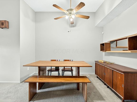 One story living at its finest! You will love this condo & its mid century modern vibe! Only 8 minutes from Polaris & easy access to highways yet feels like you are off the beaten path. Huge living room with wood burning fireplace & dining area. Kitchen comes with appliances including new 2024 high tech stainless refrigerator and 2024 all-in-one ventless washer/dryer. 3 spacious bedrooms & 2 full baths! Relax on the covered front porch & the spacious patio surrounded by mature trees for shade & privacy & your own flower beds.