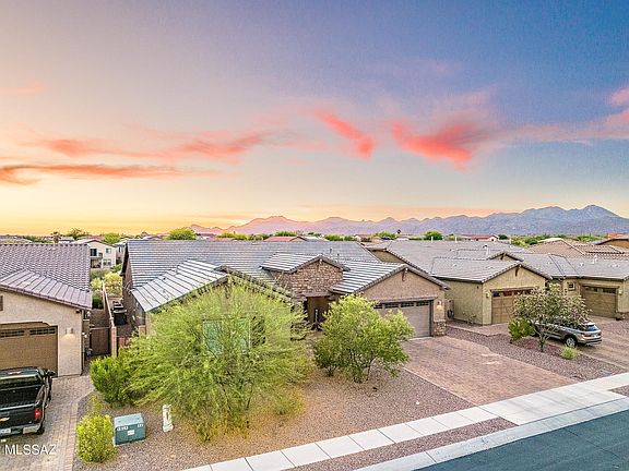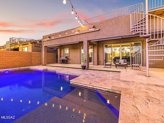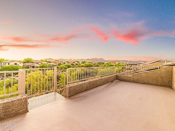 Welcome to the finest in Oro Valley living. A beautiful home located on a premium elevated lot in Eagles Summit in Rancho Vistoso. Whether you like to entertain, host guests, or enjoy private time you will find that this home hits all the marks! Walk into an open concept floor plan including multiple upgrades with a gourmet chef's kitchen with a commercial grade 6-burner gas range, wine fridge, walk in pantry and much more. The backyard sunset and mountain views are accompanied by a gorgeous Pebble-Tec heated pool, elevated gas fireplace, and observation deck with 360' views.