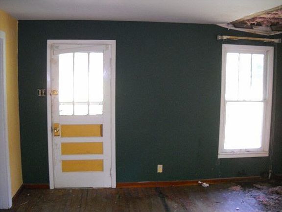 Exterior Features: Exterior: Composite siding looks in good shape, roof is showing a little rust, overall looks good Siding: Grey siding looks good nothing major Windows: Intact Soffits and Eaves: Intact Patio/Porch: Covered concrete porch Roof: Tin looks in fair shape Driveway: None Interior: Living room has damage and will need work, hardwood floors and walls look ok, some work will be necessary in bathroom, rest of inside looks healthy Interior Features: Living Room: Hardwood floors will need work but overall look ok Dining Room: Hardwood floors look good no major issues Kitchen: In good condition vinyl floors, cabinets, appliances present except dishwasher Bathroom: Tub, sink, & toilet in working order, vinyl floors need work, in good shape Bedroom: (1) Nice hardwood floors, white walls look clean (2) also hardwood with light blue walls, ceiling fan (3) Beige walls and vinyl floors look great Basement: None Mechanics: Central heating Garage: None