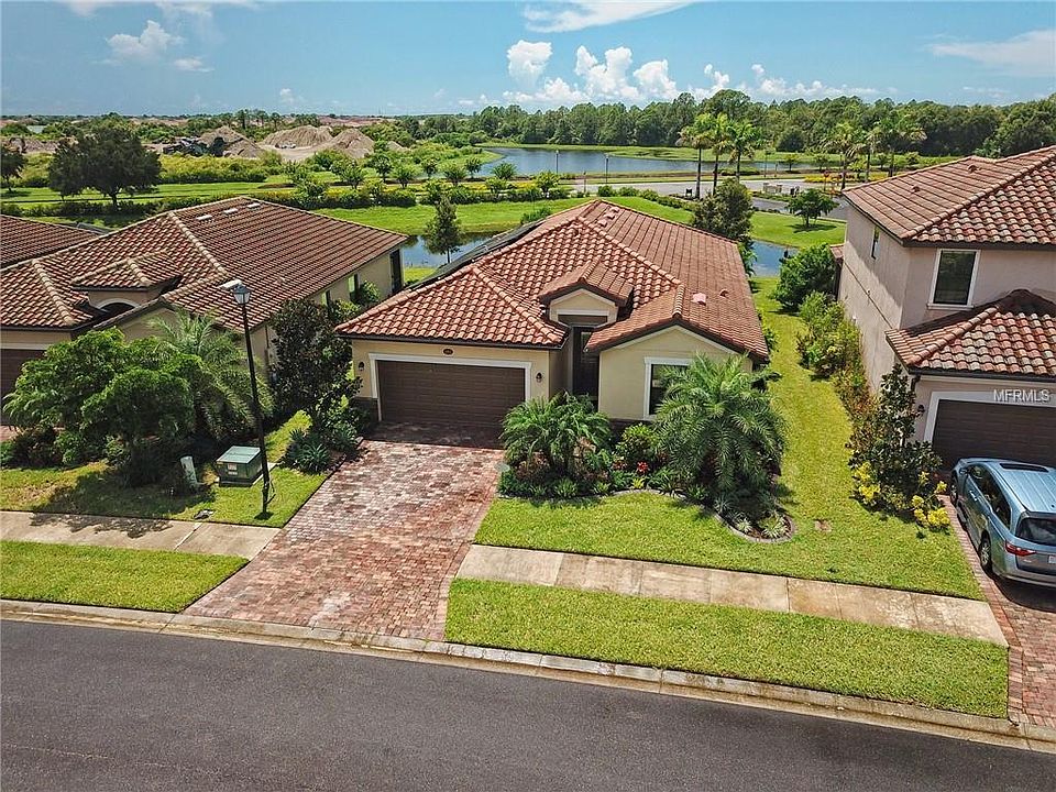 Seller Motivated! $20K Price Reduction! Beautiful remodeled home in Gran Paradiso with over $83K of Seller updates! Live the lifestyle you deserve as this home offers quality of living features normally seen only in luxury homes. The Seller updates include a new solar power roof panel, waterfront screen-caged lanai with flower planter, remote control electric retractable hurricane patio shade, all windows hurricane film to prevent glass shatter, custom built closets with lifetime warranty, custom built walk-in kitchen pantry, custom built garage cabinets, custom laundry room cabinets, custom office with built-in desk and cabinets, whole house water softener system, whole house built-in pest control, six new custom ceiling fans, two new chandeliers, exterior flower bed curbing, rain gutters, hurricane shutters and irrigation system. Truly Amazing! Enjoy the spacious open floor plan with impeccable interior finishes including tile flooring, crown molding, high ceilings, large kitchen with granite counter tops, wood cabinets, high end stainless steel appliances, breakfast bar and custom built walk-in pantry. The master bedroom presents a his-and-her walk-in custom made closets, dual bathroom sinks, luxurious soaking tub, walk-in shower and plenty of linen storage. If you love to entertain, open the sliding glass doors to enjoy the living room and patio all together. The screened and paved patio offers a relaxing atmosphere with a gorgeous view of the pond for bird watching and sunset views. With all the updates this is a price hard to resist!