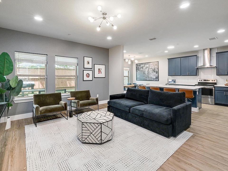 Step into luxury with this beautifully upgraded condo that truly shows like a model home. Every detail has been thoughtfully designed, starting with stunning quartz countertops, new luxury vinyl plank flooring, and sleek stainless steel appliances. Freshly painted interiors and modern can lighting in all bedrooms create a bright, inviting atmosphere. The bathrooms are a true showstopper, featuring elegant herringbone stone tile and striking black beaded stone accents. A designer staircase with custom steel railings and stylish shiplap paneling leads you to spacious upper-level bedrooms. Gorgeous light fixtures add warmth and style throughout. Even the garage has been upgraded with vinyl flooring, and the backyard is fully turfed—perfect for easy, low-maintenance living. This home blends comfort, style, and function in every square inch—don’t miss your chance to own this one-of-a-kind gem!