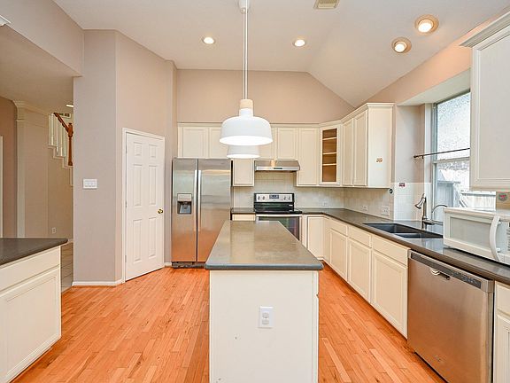Welcome to this spacious 3-bedroom, 2.5-bath lease in Houston is ready for you! From the wide front yard to the light-filled interior, this home radiates charm. The open floor plan beautifully connects the living area, complete with a cozy fireplace and backyard access, to the spacious, island-equipped kitchen featuring modern pendant lighting and stainless steel appliances a perfect hub for daily life and entertaining. Work efficiently in the dedicated Home Office/Study boasting tall white built-in bookshelves. Retreat to the first-floor Primary Bedroom with its beautiful wood flooring and a serene view of the yard. You'll find two additional bedrooms, a secondary bath with two vanities for convenience, and a dedicated Game Room for endless fun! Step outside to the truly huge backyard, an outdoor oasis perfect for play and gatherings. This home is where new, wonderful memories begin. Don't miss out on this fantastic opportunity!