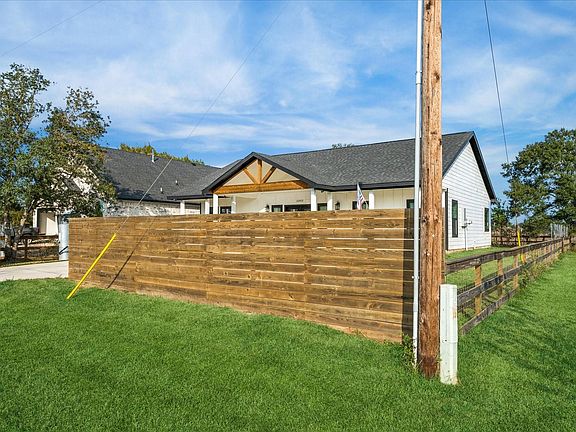 Experience peaceful country living just minutes from the city in this beautiful two year old custom home near 288. The front covered patio and modern double doors create a grand entrance to huge high ceiling den, kitchen and dining. Elevated high end finishes and beautifully appointed. Color palette is cool and welcoming. Wide vinyl plank flooring in all living areas and 5.5 inch baseboards. Large island kitchen with quartz countertops and matching gunmetal appliances. Washer, dryer and refrigerator remain. Open concept layout seamlessly connects living room, dining room and den. Primary bedroom cool and inviting escape with large window that fill the room with natural light.. Spa like bath with large standing soaking tub and large river rock separate shower. Luxurious upgraded fixtures throughout. Large backyard off great covered patio. You can have happy chickens for fresh eggs! Lots of parking space. Perfect blend of peaceful country living and modern city access.