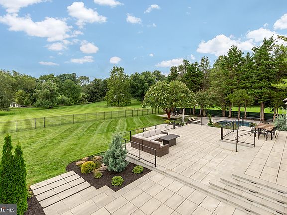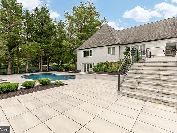 A thoughtfully designed and masterfully crafted residence, this modern masterpiece showcases exceptional design elements and finishes throughout. Set on over three acres of pristine, manicured grounds at the end of a quiet cul-de-sac, the home offers complete privacy and serenity. With more than 7,000 square feet of refined living space, every detail has been carefully considered to create one of Potomac’s finest custom homes. The interior was completely reimagined with an airy, open-concept design stretching from front to back. Expansive Marvin Infinity floor-to-ceiling windows flood the home with natural light, while a retractable wall seamlessly connects the kitchen and terrace for a true indoor-outdoor living experience. Wide-plank natural maple flooring and exceptional millwork elevate the modern aesthetic with timeless warmth. The main level is anchored by a gracious living room with custom built-ins, a marble mantel, and a sleek gas fireplace. A dramatic foyer flows effortlessly into the formal dining room, where an oversized bay window frames sweeping views of the grounds. The gourmet kitchen blends elegance and function, featuring custom Italian cabinetry, quartz waterfall countertops, a built-in Miele espresso bar, Jenn Air refrigerator and freezer, and a six-burner Jenn Air induction cooktop with pot filler—perfect for both everyday living and entertaining at a grand scale. The private main-level primary suite is a true retreat, complete with a designer walk-in closet and a spa-like bath featuring a freestanding soaking tub with serene views, a marble-clad shower with dual fixtures, floating vanities, and backlit anti-fog mirrors. Upstairs, generously sized bedrooms offer custom upgrades including remote-controlled blinds, quartz-topped vanities, and herringbone marble tile accents. The architecturally designed walk-out lower level was created with entertainment and recreation in mind. Highlights include a spacious recreation room, exercise area, theatre or yoga studio, two additional bedrooms, a luxurious full bath, a wet bar, woodworking shop, and abundant storage. Double glass doors lead to a stunning outdoor sanctuary with a newly refinished heated pool, tiered hardscaping with Blu Grande pavers, multiple decks for entertaining, and a firepit area overlooking the peaceful landscape. For car enthusiasts, the property offers a two-car attached garage (currently outfitted as a gym and studio) plus a detached three-car garage with double-height bays that can accommodate lifts for up to eight vehicles. Every detail of this home reflects superior craftsmanship, from solid core doors and designer fixtures to a full Marvin Infinity window package and high-efficiency mechanical systems. Ideally located just minutes from fine dining, shopping, trails, and the C&O Canal, this residence delivers both luxury and convenience.