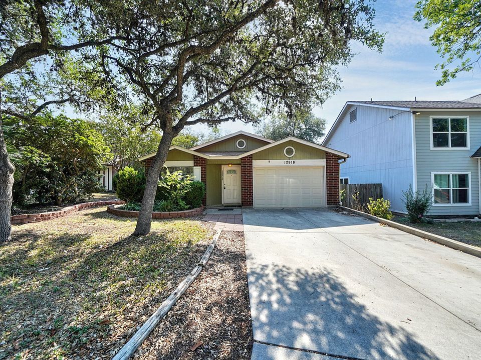 Charming 3-bedroom, 2-bathroom home now available in the highly desirable Hunters Chase subdivision, located in the heart of San Antonio's Northwest side. Step inside to find an inviting entryway that opens into the first of two living areas, highlighted by expansive ceramic tile flooring that flows seamlessly through the common spaces. The main living room features a cozy wood-burning fireplace and connects directly to the kitchen, creating an ideal setting for both everyday living and entertaining. The beautifully updated kitchen offers granite countertops, a stylish tiled backsplash, abundant cabinetry, and comes fully equipped with all appliances-including a refrigerator. The spacious primary suite includes a full en-suite bathroom with a single vanity and a tub/shower combination. Both secondary bedrooms are generously sized and each includes a ceiling fan for added comfort. The backyard is a true retreat, with mature trees providing shade and plenty of space for outdoor enjoyment. Conveniently located near Loop 1604, UTSA, USAA, and the Medical Center, this home combines comfort, charm, and accessibility. Truly a pleasure to show.