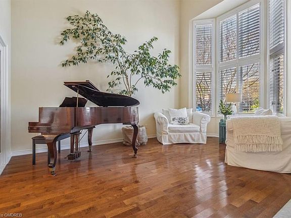 Follow Your Dream, Home to this beautiful property on a private court in the most desirable Glen Abbey here in Oakville! This stunning home offers over 3400 sq ft of above grade living space. Upon entering you will no doubt feel how grand this family home is with its formal living room boasting Cathedral Ceilings over 16ft in height along with wall to wall windows that completely light this room up, perfect for a Grand Piano! The layout on the main floor is an entertainers dream with the flow from the formal dining room to the bright and spacious kitchen leading you outside to your private oasis including a pool for everyone to enjoy. The family room which takes in the afternoon sun and large office complete this main floor space. The Primary retreat bedroom is overly generous in size and will not disappoint along with the ensuite bathroom and walk in closet. This 4 bedroom/2.5 bathroom home has beautiful hardwood throughout along with California shutters and large windows wrapping around the entire house. Grainer Court offers a 10+++ walk score to shops, parks, green space, walking trails and Abbey Park High School which is ranked as one of the very best! If you are in the market for an extraordinary lifestyle where your kids can play road hockey or hopscotch without worry on this private court with only 12 other homes, this could truly be one of the best real estate offerings there is! Relax and enjoy your tour!