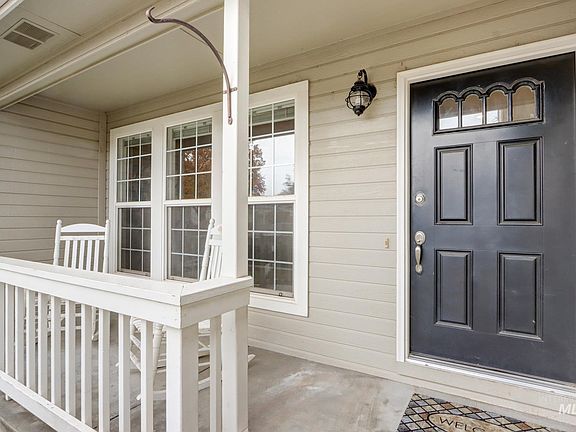Central Eagle single level home tucked away in a cozy culdesac. Kitchen has stainless steel appliances, full sized pantry and open to the large vaulted ceiling great room with wood burning fireplace. Floor to ceiling windows throughout the main living area provide a bright cheery interior enhanced by the front entry skylight. Front entry and master bedroom have hickory hardwood floors. Spacious master bedroom w/large walk-in closet, dual sinks and walk-in shower. Office has good sized closet and could be used as a fourth bedroom. Fully fenced yard has garden area, beautiful retaining wall and mature trees. Relax in quietude on the beautiful stamped back patio. Side exterior of garage you will find a full concrete pad behind a double gate for potential RV parking of small boat or ATVs. Home is just minutes from Eagle's Bike & Dog Park and Eagle foothills hiking!