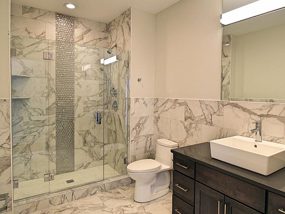 Center islandQuartz countertopsWalk in marble showerRoom darkening shadesFloor to ceiling windowsHigh end finishesCustom cabinetry