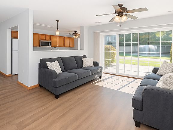 Beautifully maintained and move-in ready first-floor condo in the heart of Homer Glen, featuring 2 bedrooms, 2 full bathrooms and a rare 1.5-car detached garage. This unit offers convenience, comfort and thoughtful updates throughout, along with handicap-accessible features such as wider doorways, lower light switches, easily accessible wall outlets and a wider-than-typical garage. Enjoy newer wood laminate flooring in the kitchen, dining area and spacious living room, which opens to a large private patio through sliding glass doors-perfect for relaxing or entertaining. The kitchen includes all appliances and the water heater (2017) and furnace (2022) offer peace of mind with recent mechanical updates. Both bedrooms feature walk-in closets for ample storage. The primary suite includes an updated private bath with wood laminate flooring, while the nicely remodeled hall bath features a tub/shower combo, new vanity, new toilet and matching flooring for a cohesive, modern look. Located in a well-maintained community close to parks, shopping and major transportation, this condo offers easy living with smart updates and accessibility features rarely found at this price point. The garage is #1A, the farthest NE garage, next to the garbage corral. The additional parking spot is market #32, just out the front door! Don't miss out-schedule your showing today!